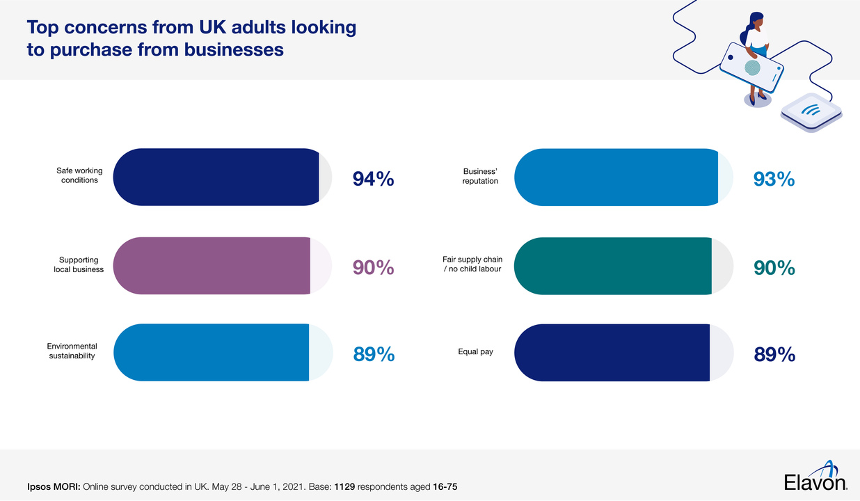 For only slightly fewer, at 89%, the environmental sustainability of the company and its provision of equal pay (also 89%) were also significant motivators for consumers when choosing which businesses to buy from.