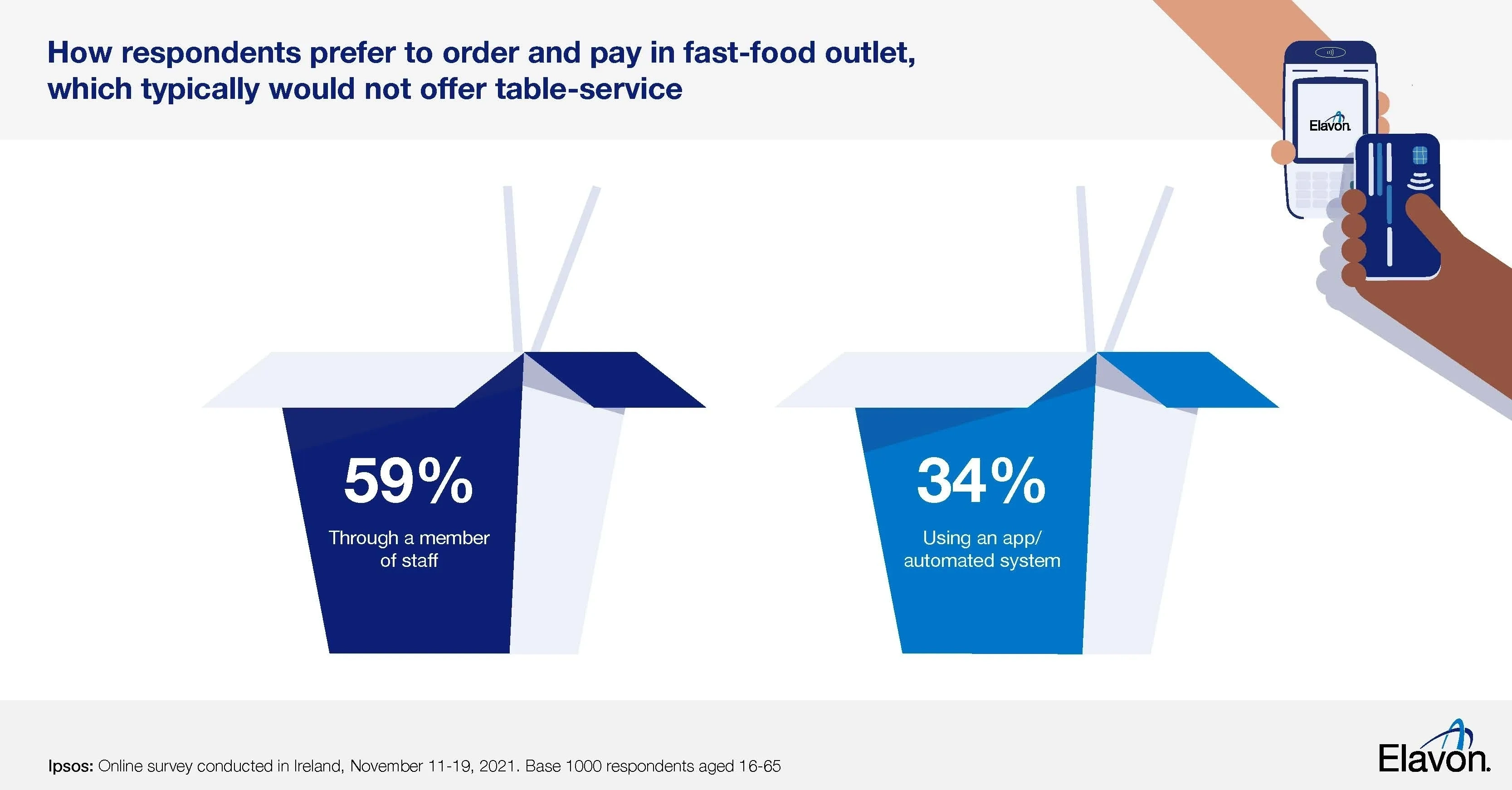 However, that doesn’t mean customer-facing staff are obsolete. To find out just what proportion of the population still prefer to order and pay through a staff member, we asked 1000 adults, aged 16-65, in Ireland between November 11-19, 2021 in an online survey with market researchers Ipsos, and their answers are clear.