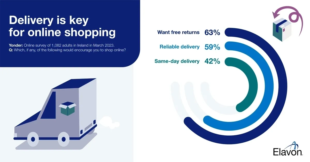 When we questioned more than 1,000 adults across Ireland, two thirds (63%) of those who answered said that free returns, labels and packaging would encourage them to shop online. A similar proportion (59%) said reliable delivery was a key reason to encourage shopping online.