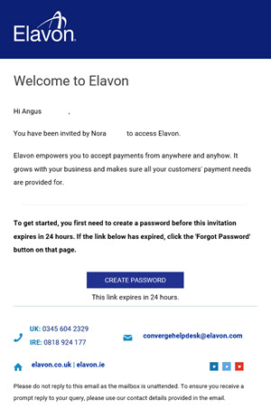 The email will come from noreply@elavon.com with the subject “Elavon Login Verification Code”.